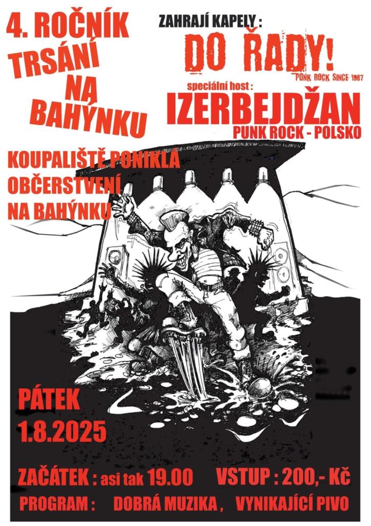 Druhou polovinou pokračuje vějíř letních akcí na koupališti pátek 1. 8. Trsání na Bahýnku (punk rockový večer) sobota 2. 8. písničkář Vladimír Merta