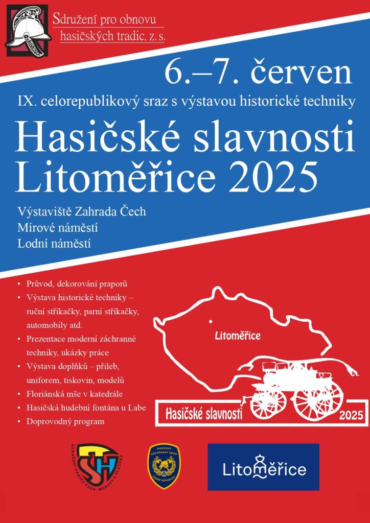 Přes den je volný program v Litoměřicích i na výstavišti (viz. plakát v příloze či na https://www.hasicskeslavnosti.cz/informace/pro-navstevniky/ ).